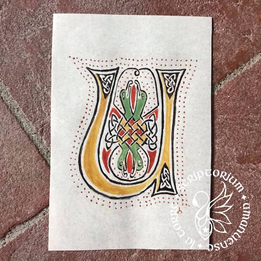 Iniziali miniate - scritte a mano in calligrafia SemioncialeAcquista o prenota l'iniziale che preferisci, realizzata completamente a mano: opere di piccolo formato da collezionare e da incorniciare, costituiscono un'idea raffinata ed esclusiva da regalare anche come biglietto d'auguri. Di questa serie sono disponibili tutte le lettere ed i numeri; varianti prevedono anche dettagli e rilievi laminati in oro zecchino 24K, realizzate anche in altre grafie e su altri tipi di carte pregiate di diverse dimensioni (se disponibili, sono presenti sempre in questo catalogo). Contattami per valutare la tua personalizzazione.